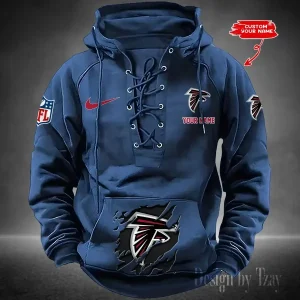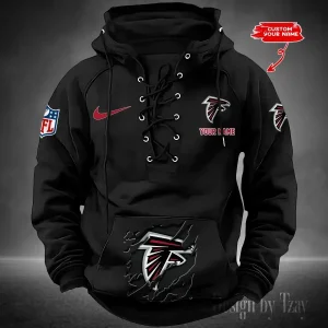 Atlanta Falcons Lace-Up Cross V-Neck Drawstring Hoodie