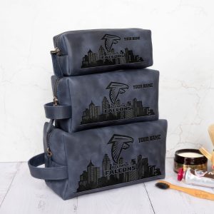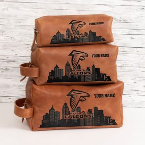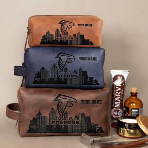 Atlanta Falcons Leather Toiletry Bag For Men, Custom Your Name, 2D In Leather Dopp Kit Bag, Football Fan Gifts, Gift For Dad V01