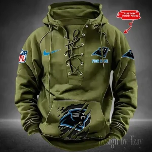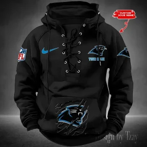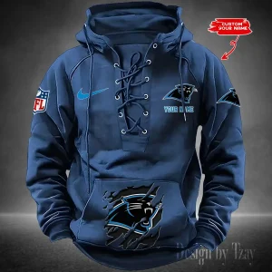 Carolina Panthers Lace-Up Cross V-Neck Drawstring Hoodie