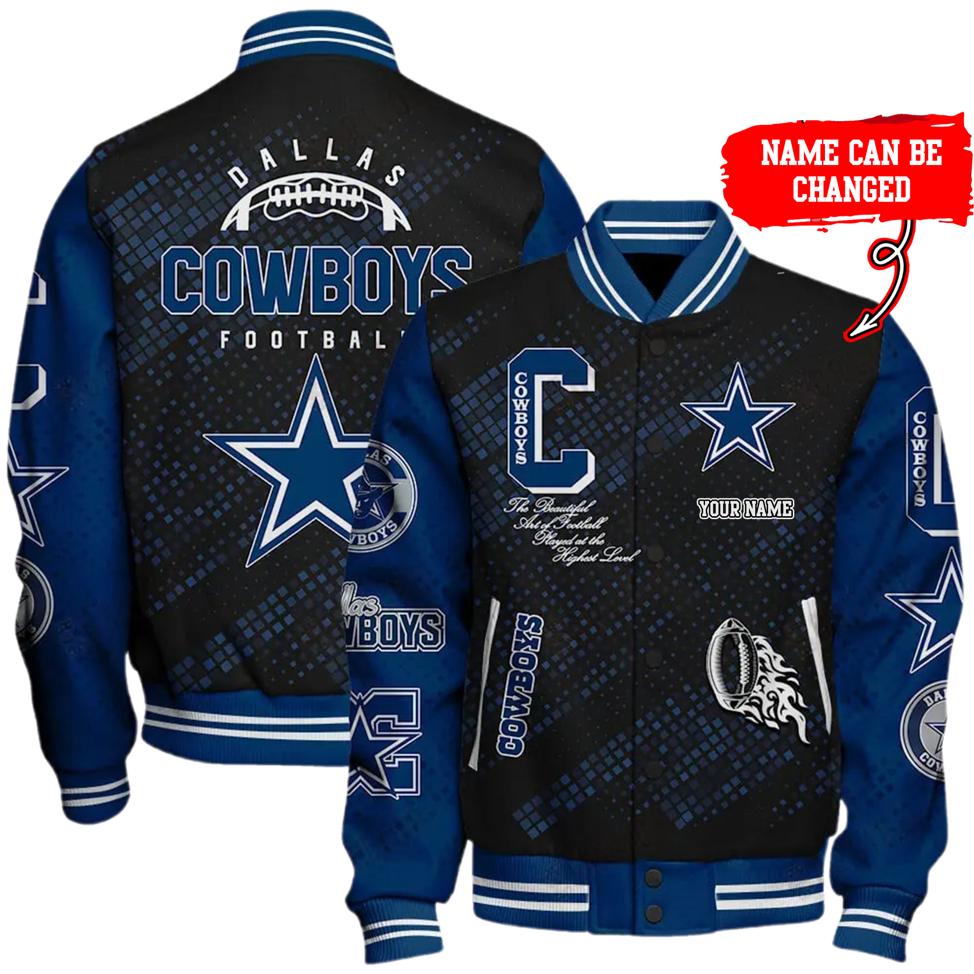 Hi there!! Are you looking at our Dallas Cowboys Bomber Jacket . These Bomber Jacket are unique, made with love, and they are perfect accessories for your outfit. The Dallas Cowboys Emblem on the shoes makes it a perfect item for any Dallas Cowboys Lovers.