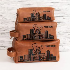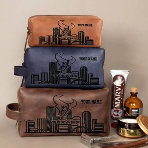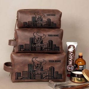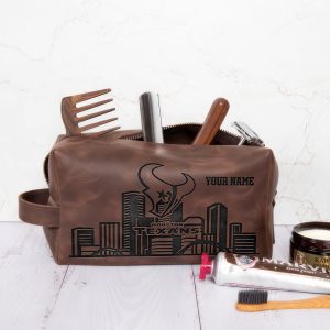 Houston Texans Leather Toiletry Bag For Men, Custom Your Name, 2D In Leather Dopp Kit Bag, Football Fan Gifts, Gift For Dad V01