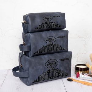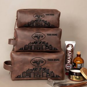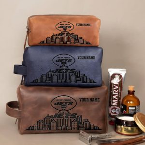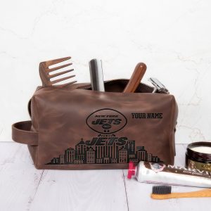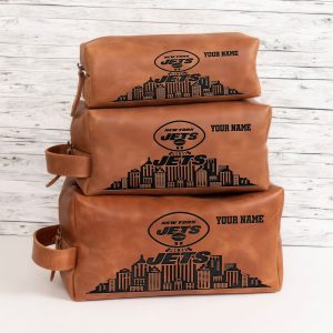 New York Jets Leather Toiletry Bag For Men, Custom Your Name, 2D In Leather Dopp Kit Bag, Football Fan Gifts, Gift For Dad V01