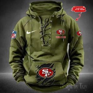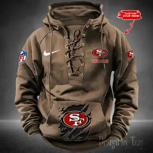 San Francisco 49ers Lace-Up Cross V-Neck Drawstring Hoodie